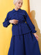 Pocket-Flap Waist Tunnel Skirted Crinkle Suit Navy Blue