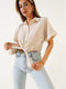 Chemise rayée à nouer sur le devant, beige