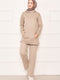 Kangaroo Pocket and Hood Detailed Two-Piece Suit Beige