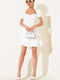 Balloon Sleeve Button-Down Mini Dress in Ecru