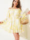 Floral Pattern Boat Neck Chiffon Dress Yellow