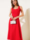 | Name | Square Neck Rose Accessorized Midi Dress Red |
