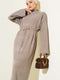 | Name | Loose-fitting belted knitted dress in mink color. |