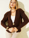 Gold Buttoned Reverse Stitch Knitted Cardigan, Brown