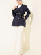 | Name | Navy Blue One-Shoulder Appliquéd Buttoned Trench Coat |