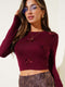 | Name | Long-sleeved crop top with bow detail, burgundy. |