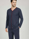 Buttoned Plus Size Interlock Men's Pajama Set Navy Burgundy