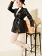 | Name | Black Double-Breasted Leather Jacket with Drawstring |