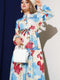 | Name | Waist Tunnel Buttoned Patterned Dress Blue |