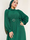 Half Buttoned Balloon Sleeve Belted Dress Emerald