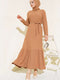 Our new season dress has arrived for you with its eye-catching elegant design. Our dress is crinkled. It is unlined. Our dress has an oval neckline. It is a tiered model. Our dress, which has a belt made of its own fabric, is quite stylish. Color options are available. A necklace has been used as an accessory.