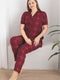 Striped Plaid Short Sleeve Plus Size Pajama Set Red