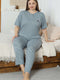 Flowery Embroidered Short-Sleeve Plus Size Pajama Set in Light Green