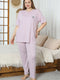 NameFlowery Embroidered Short-Sleeve Plus Size Pajama Set Lilac