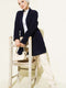 Shawl Collar Brass Knit Sweater Cardigan Navy Blue