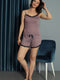 Polka Dot Suspender Viscose Shorts Set Lilac