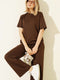Short-Sleeved Loyşa T-shirt Two-Piece Set Brown