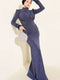 Glittery Evening Dress with Feathered Sleeves, Blue