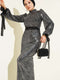 | Name | High Neck Belted Sequin Embellished Evening Gown in Black and Silver |