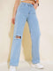 Yeni sezon pantolon modelimiz sizlerle beraber. Yüksek bel pantolonumuzun dört adet cebi bulunmaktadır. Bol paça modeldir. Dizi yırtık modeldir. Belinde kemer köprüleri vardır. Fermuarlı ve düğmelidir. Kombinleriniz vazgeçilmez parçası olacak pantolonumuz gardıroplarınızda yerini beklemektedir.