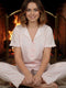 Short Sleeve Pajama Set with Front Ribbon White Pink