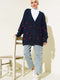 | Name | Heart Embroidered Knitted Cardigan Navy Blue |
