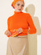 Turtleneck Finger-Tucked Knit Sweater Orange