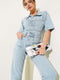 Double Chest Pocket Buttoned Denim Overalls Ice Blue