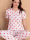 Heart Pattern Short Sleeve Pajama Set Ecru