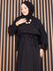 Black Batwing Sleeve Hijab Dress with Pleated Waist