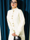 Long Knitted Cardigan with Metal Gold Buttons, Ecru
