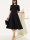 | Name | Short Sleeve Midi Dress with Stitching Detail, Black |