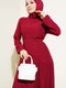 | Name | Layered Crepe Belted Dress, Burgundy |