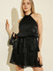 | Name | Black Mini Dress with Neck Tie and Elastic Waist |