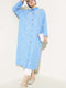 | Name | Patterned Long Shirt with Wooden Buttons, Blue |