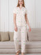NamePear Pattern Buttoned Short Sleeve Pajama Set Beige