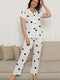 Heart Patterned Short Sleeve Pajama Set Black with Hearts