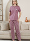 Short Sleeve Buttoned Patterned Pajama Set Dusty Rose