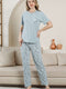 Short Sleeve Buttoned Patterned Pajama Set Mint