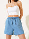 | Name | Elastic Waist Pocket Denim Shorts Blue |