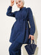 Basic Two Piece Suit with Drawstring Belt Navy Blue