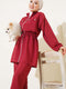Pocket Flap Waist Tunnel Two Piece Suit Claret Red