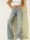 Wide-Leg Loose Palazzo Jeans Green Tint