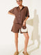 Two-Piece Set of Shorts with Drawstring Belt, Coffee