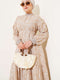 Sleeve and Collar Ribbed Patterned Dress Beige