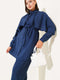 | Name | Shoulder Ruffle Cape Two Piece Suit Navy Blue |