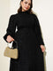 Glitter Bearded Balloon Sleeve Belted Dress Black