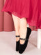 Suede Gold Buckled Mary Jane Ballerina Shoes Black