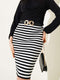 NameStriped Elastic Waist Knit Midi Skirt Black
