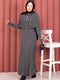 Button Detailed Cape Knit Dress Suit Smoke